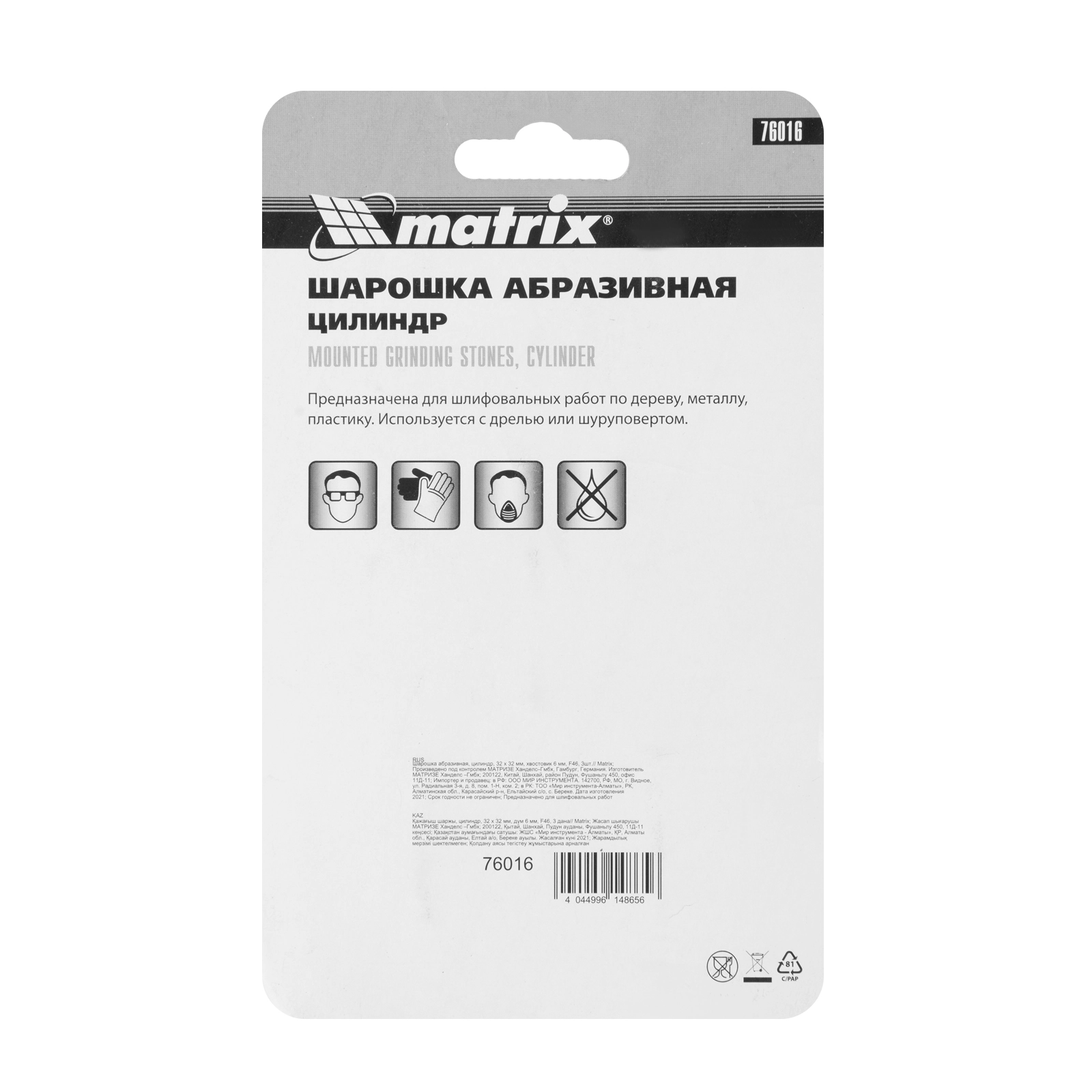 ПроизводителиШарошка абразивная (дерево,металл,стекло,пластик), цилиндр, 32x32мм, хв.6мм, F46, 3шт (76016) MATRIX