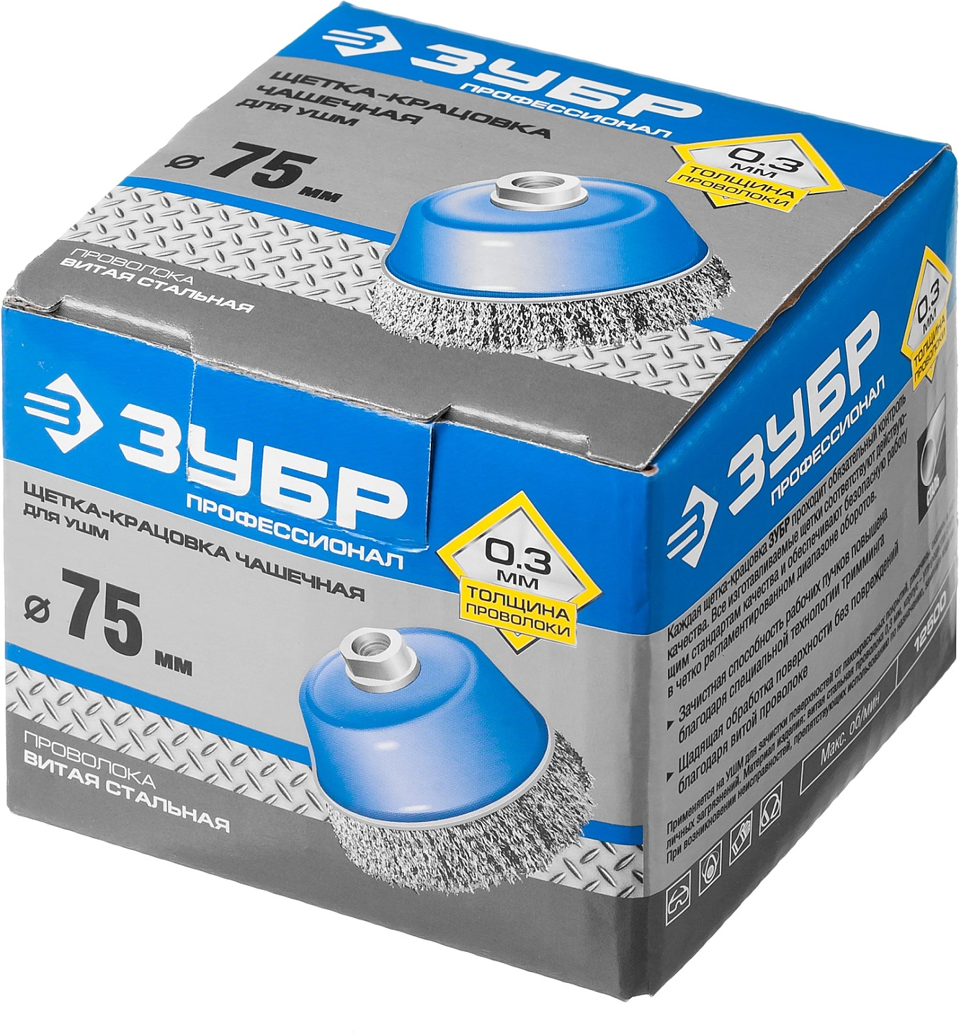 ПроизводителиЩетка чашечная для УШМ, витая стальная проволока 0,3мм, 75ммхМ14 "ПРОФЕССИОНАЛ" (35261-075_z02) ЗУБР
