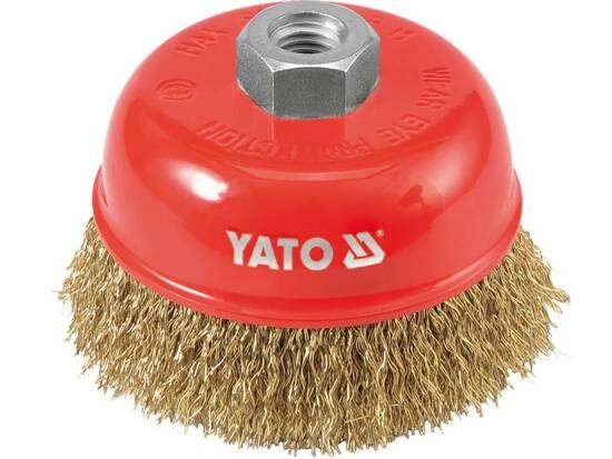 ПроизводителиЩетка чашечная (гофр) 100мм/М14, латун. пров. (YT-4766) YATO