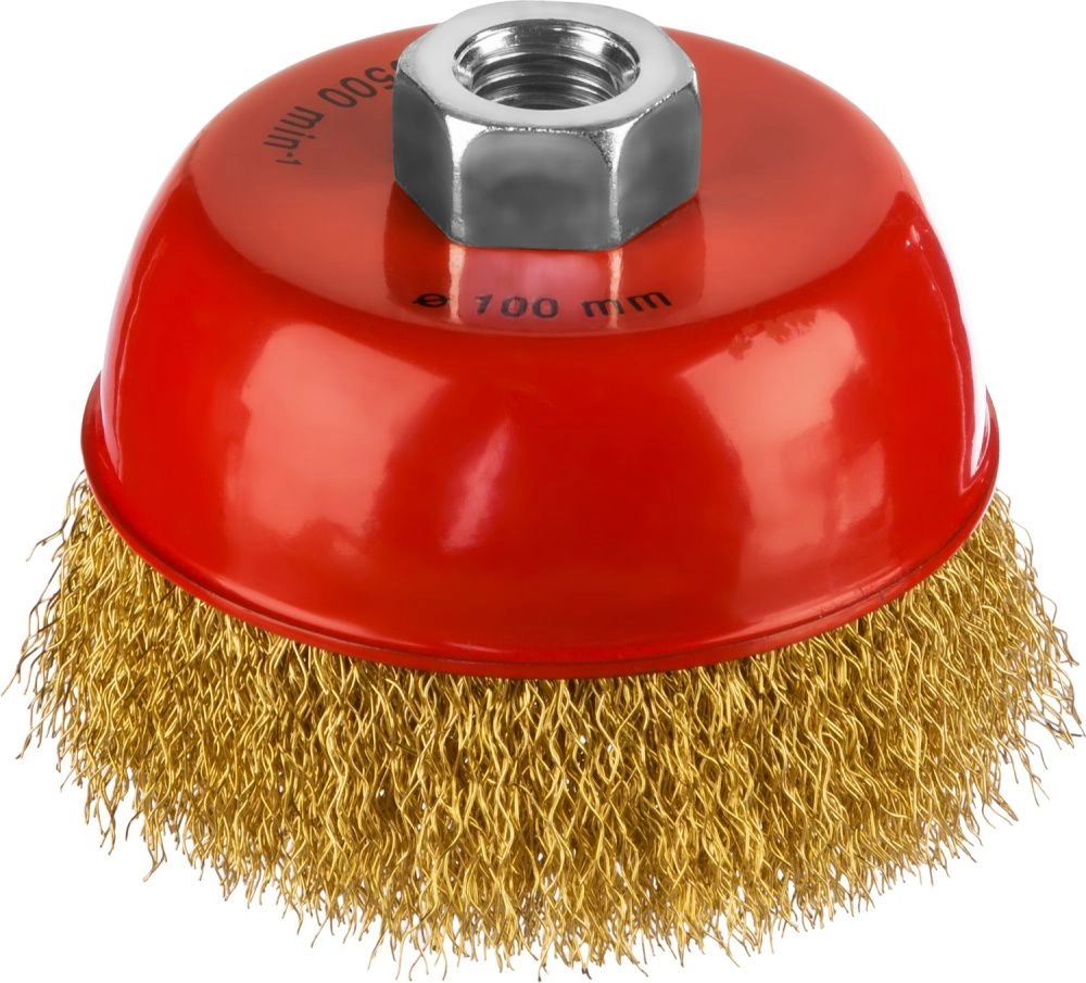ПроизводителиЩетка чашечная (гофр) d=100мм/М14, латун.пров. (35142-100) MIRAX