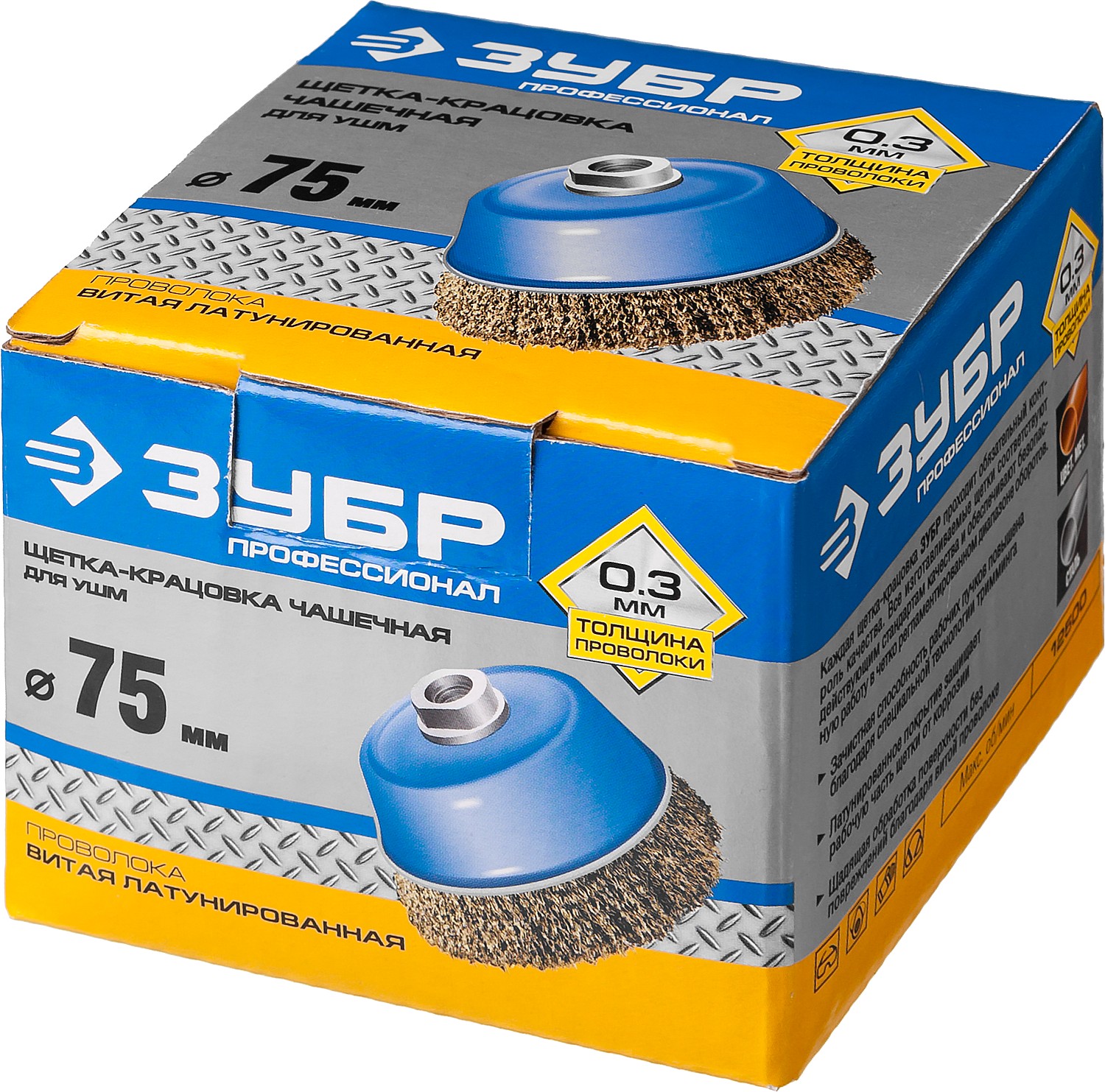 ПроизводителиЩетка чашечная (гофр) d=75мм/М14, латун.пров. "Профессионал" (3526-075_z02) ЗУБР
