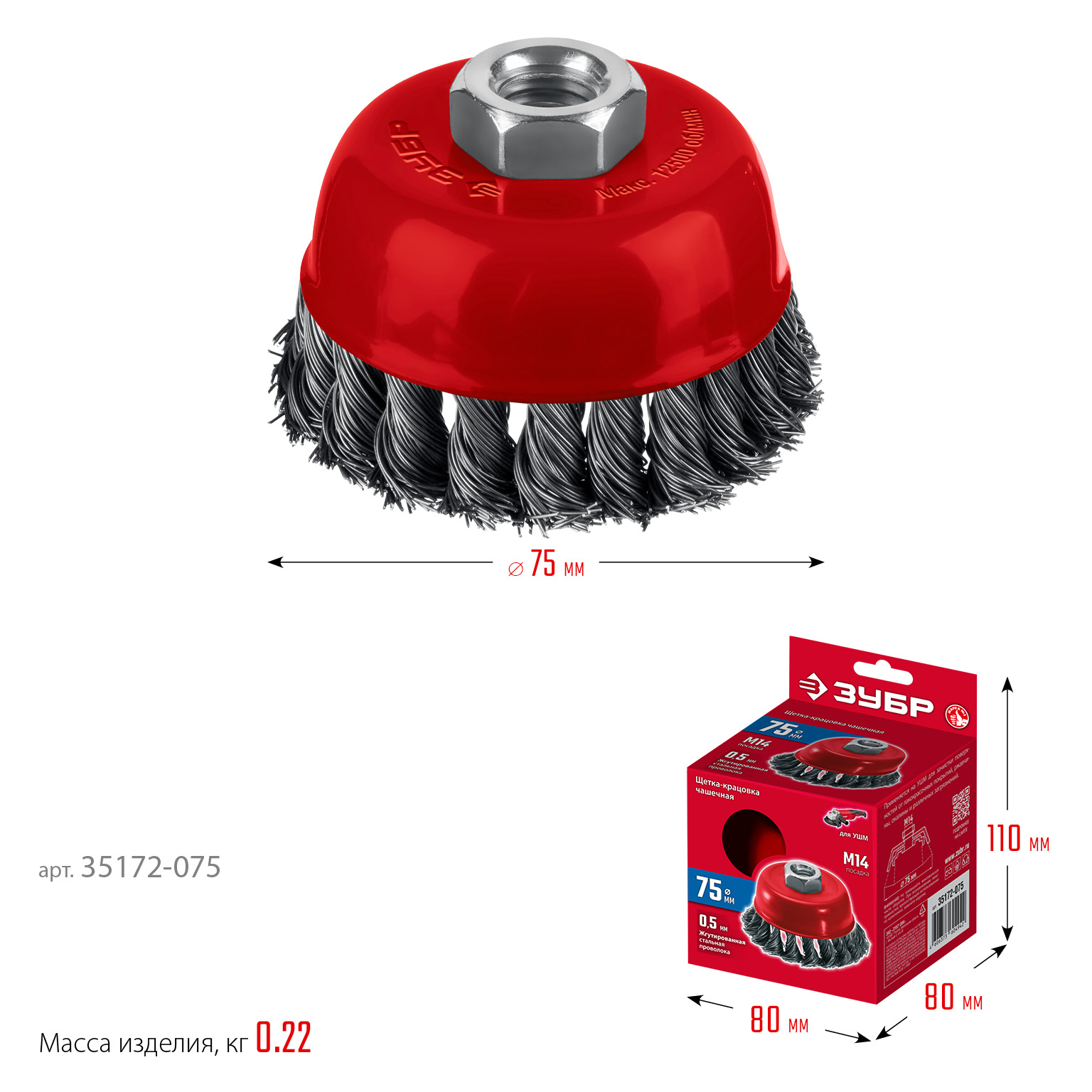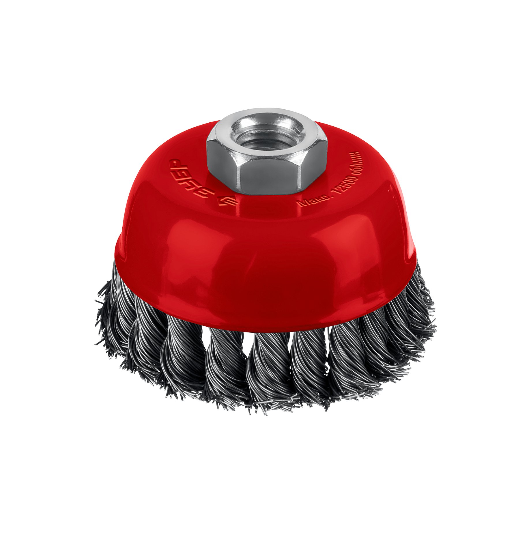 Щетка чашечная для УШМ ЗУБР 35172-075, предназначена для зачистки поверхностей от лакокрасочных покрытий, ржавчины, окалины, различных стойких загрязнений, а также для зачистки сварных швов. Каждая щетка-крацовка ЗУБР проходит обязательный контроль качества. Все изготавливаемые щетки соответствуют действующим стандартам качества и обеспечивают безопасную работу в четко регламентированном диапазоне оборотов. Стальная жгутированная проволока, повышенный ресурс щетки.Производитель: Крафтул И/Е Гмбх, Альтер Поствег Штр., Лоенинген, Германия