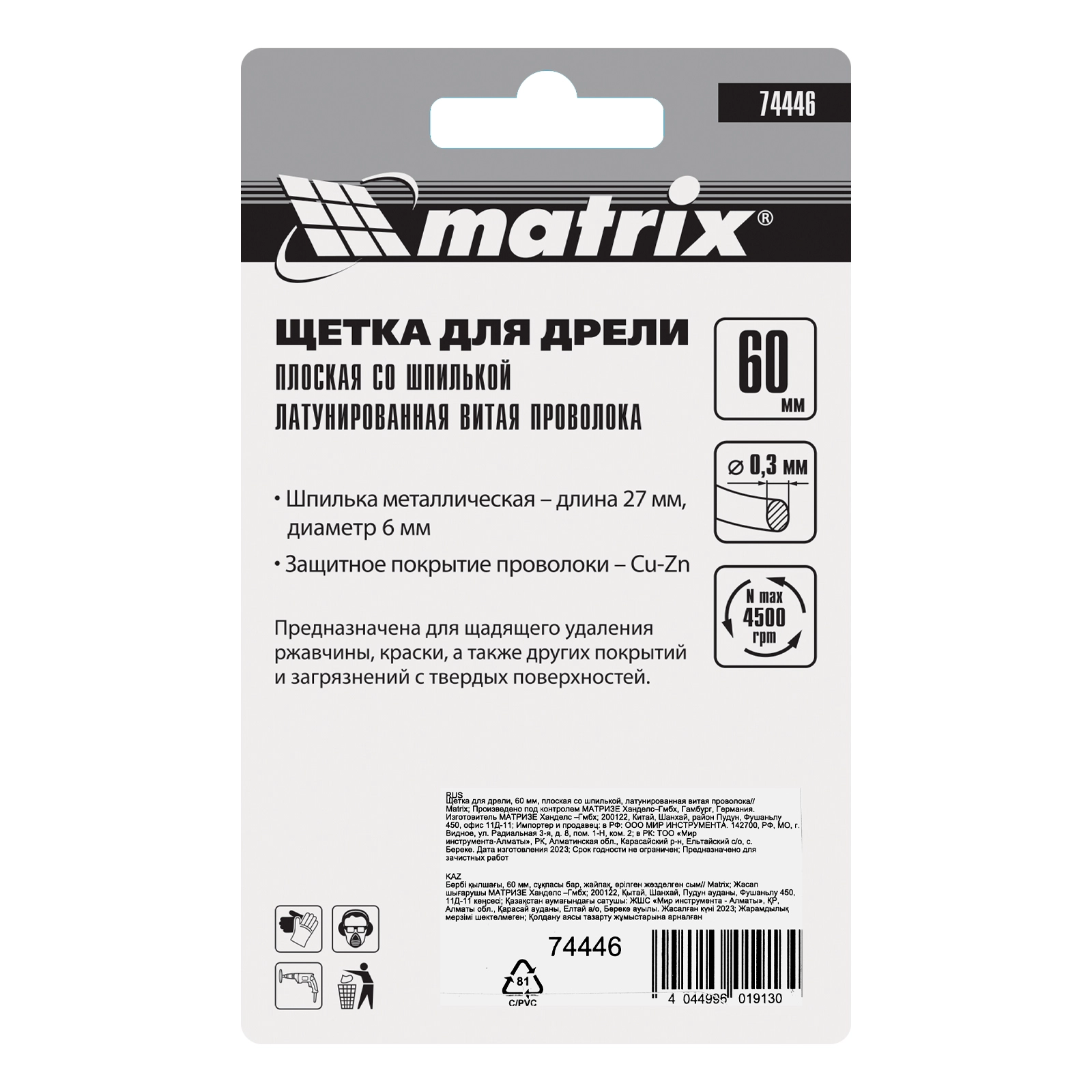 ПроизводителиЩетка дисковая для дрели 60мм, витая латун. стальн.пров. 0.3мм (74446) MATRIX