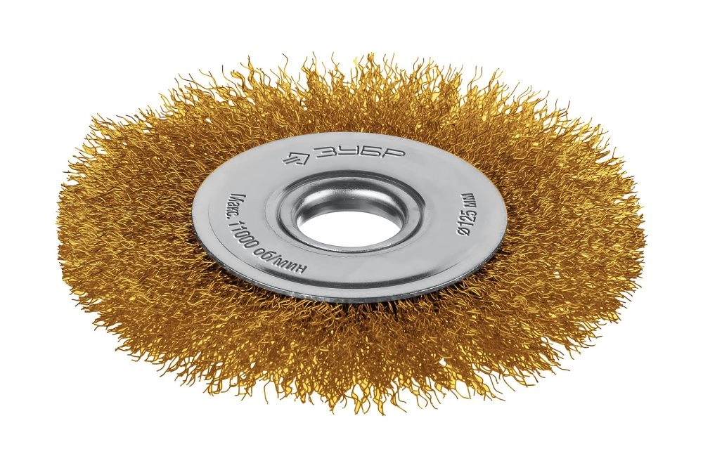 ПроизводителиЩетка дисковая (гофр) d=125х22мм, латун.пров. 0.3мм (35171-125) ЗУБР