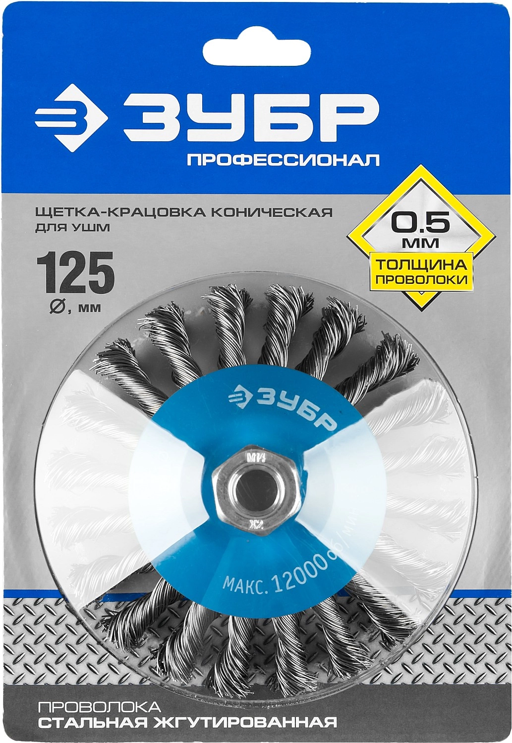 ПроизводителиЩетка дисковая (коса) d=125мм/М14, конич. (35269-125_z02) ЗУБР