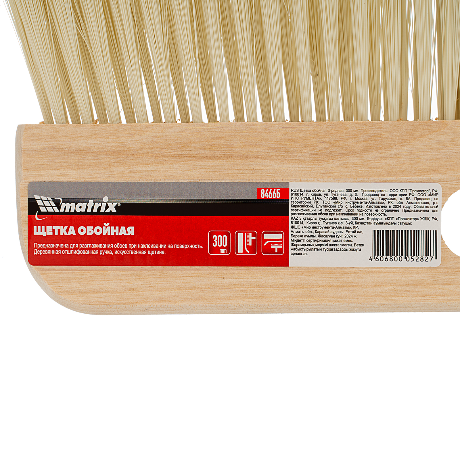 Щетка обойная 3-рядная MTX 84665 шириной 300 мм используется при проведении отделочных работ. Она предназначена для разглаживания обоев на стене, а также может применяться для нанесения клея на полотна.