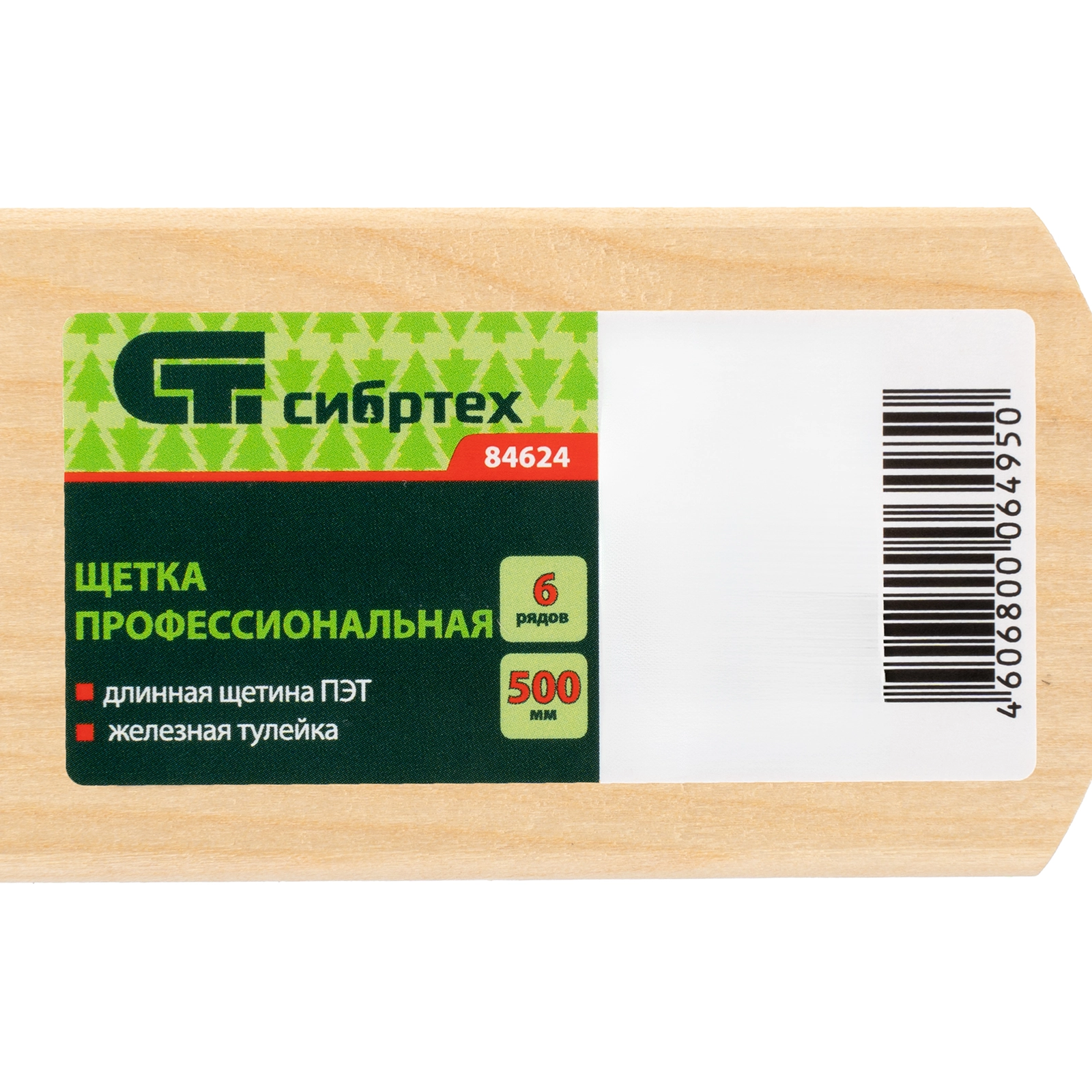 Профессиональная щетка для пола Сибртех 84624 длиной 50 см, 6-рядная, с длинной щетиной и железной тулейкой, без черенка, предназначена для уборки жилых, технических и хозяйственных помещений, а также дорожек, лестниц и тротуаров.