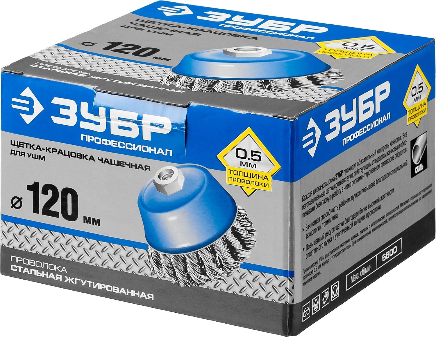 ПроизводителиЩетка чашечная (коса) d=120ммхМ14, стальн. пров. 0,5мм (35275-120_z02) ЗУБР
