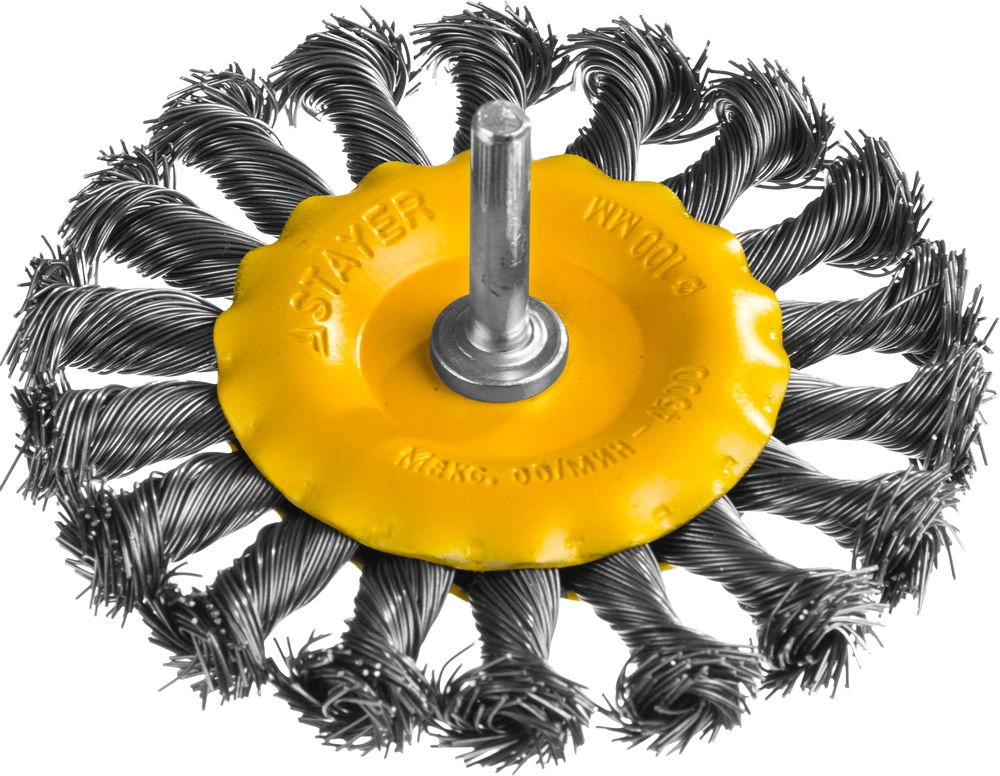 ПроизводителиЩетка дисковая для дрели 100мм, жгутир. стальн. пров. 0,5мм "PROFESSIONAL" (35115-100) STAYER