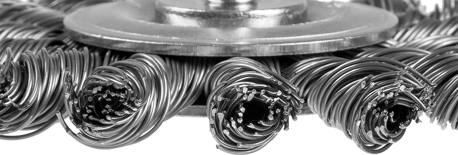 Повышенный ресурс щетки благодаря еще более высокой жесткости сплетенного пучка и увеличенной толщине проволоки