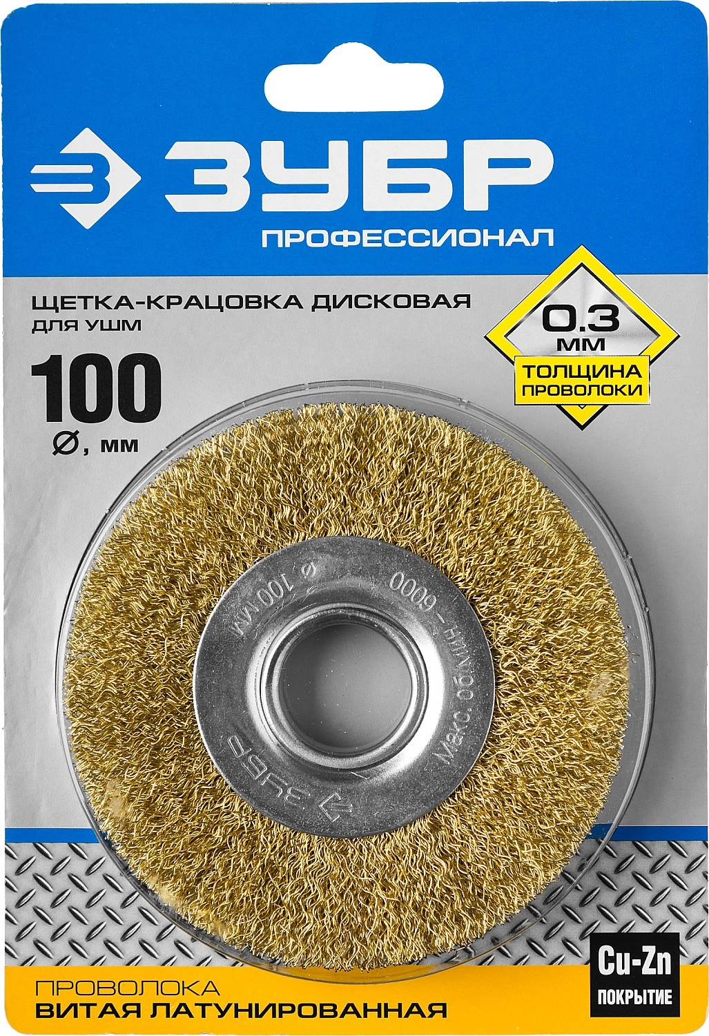 ПроизводителиЩетка дисковая (коса) d=100х22мм, стальн. латун. пров. 0,3мм (35187-100_z01) ЗУБР