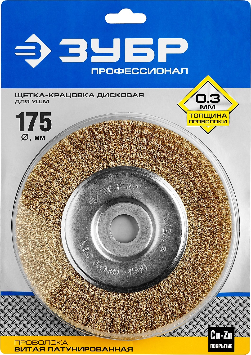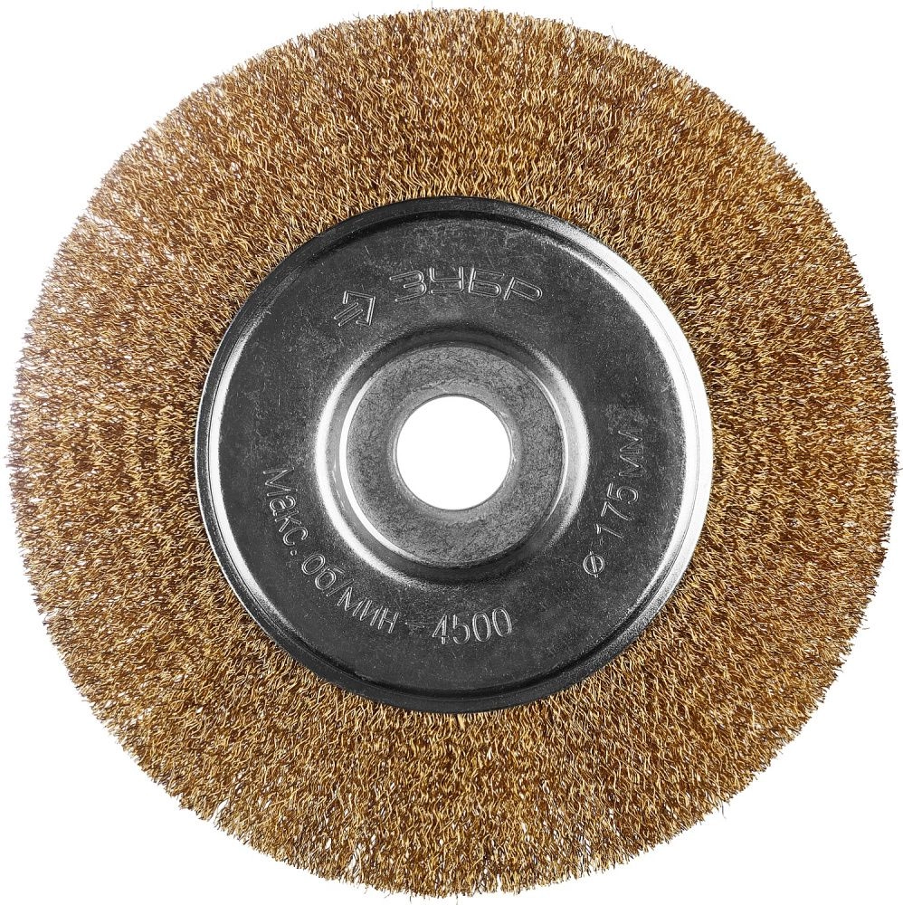 ПроизводителиЩетка дисковая (коса) d=175х22мм, стальн. латун. пров. 0,3мм (35187-175_z01) ЗУБР