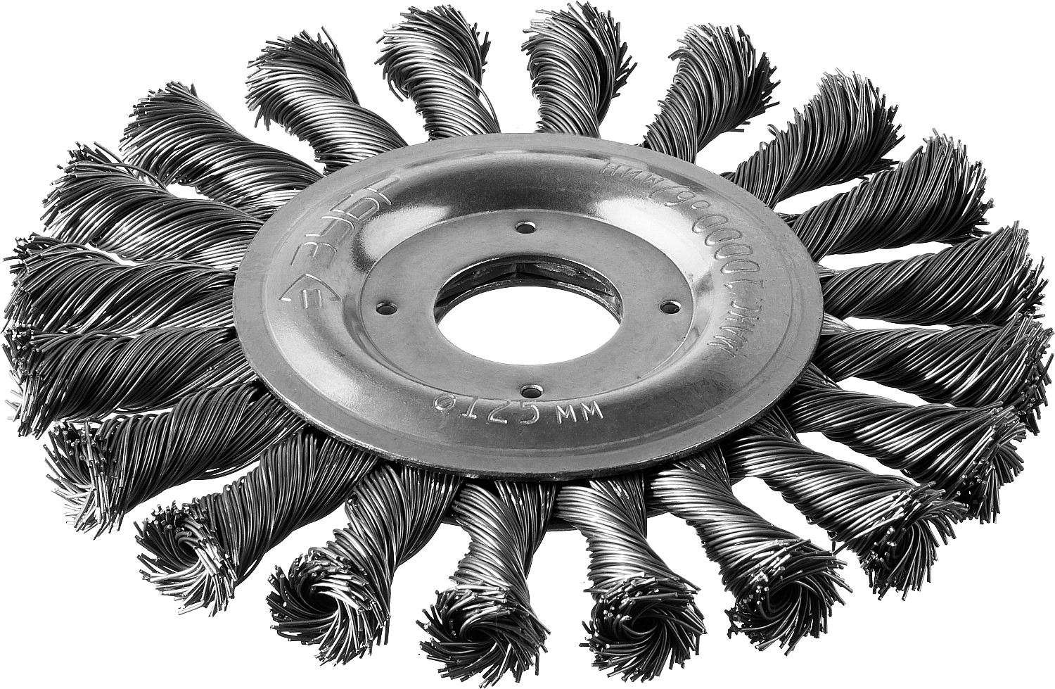 ПроизводителиЩетка дисковая (коса) d= 125х22мм, стальн. пров. 0,5мм, (35190-125_z02) ЗУБР