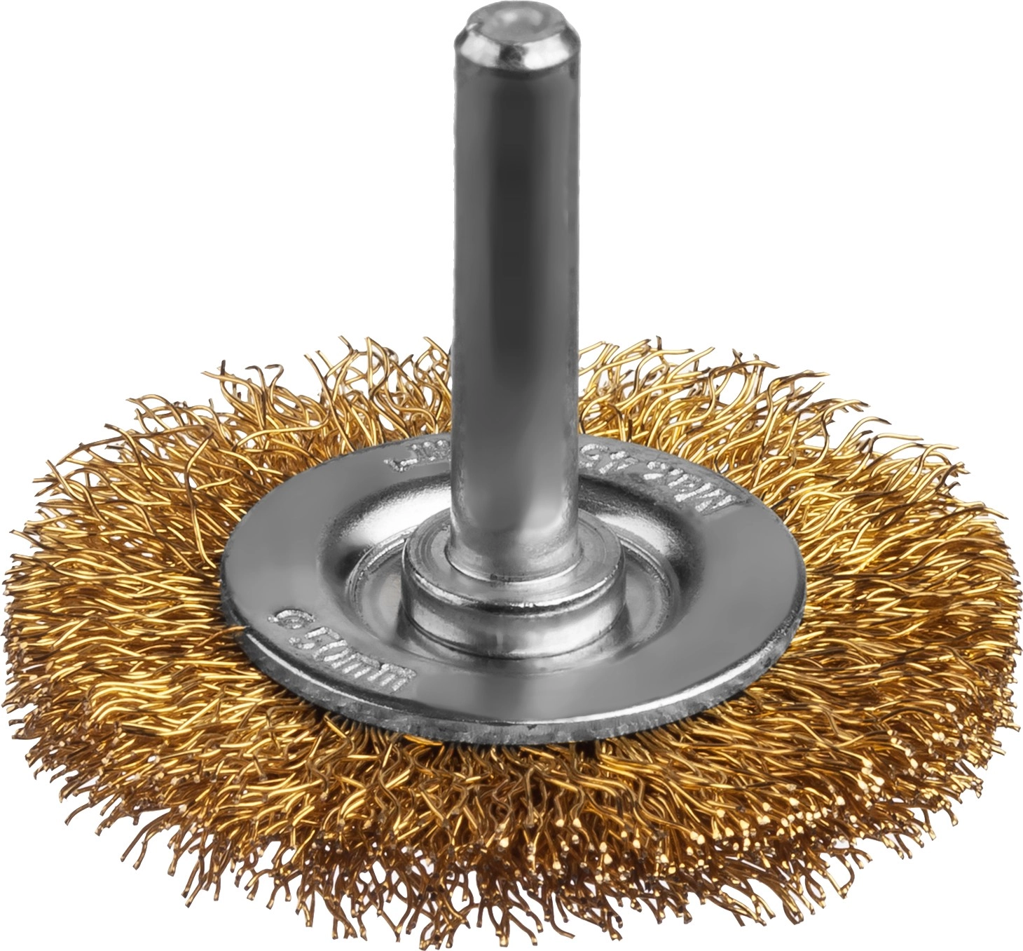 ПроизводителиЩетка дисковая для дрели, витая стальная латунированная проволока 0,3 мм, d=50 мм, MIRAX 35145-050