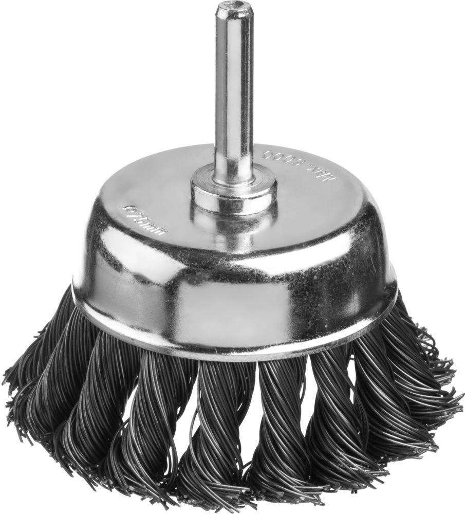 ПроизводителиЩетка чашечная со шпилькой, жгутированная стальная проволока 0,5 мм, d=75 мм, MIRAX 35148-075