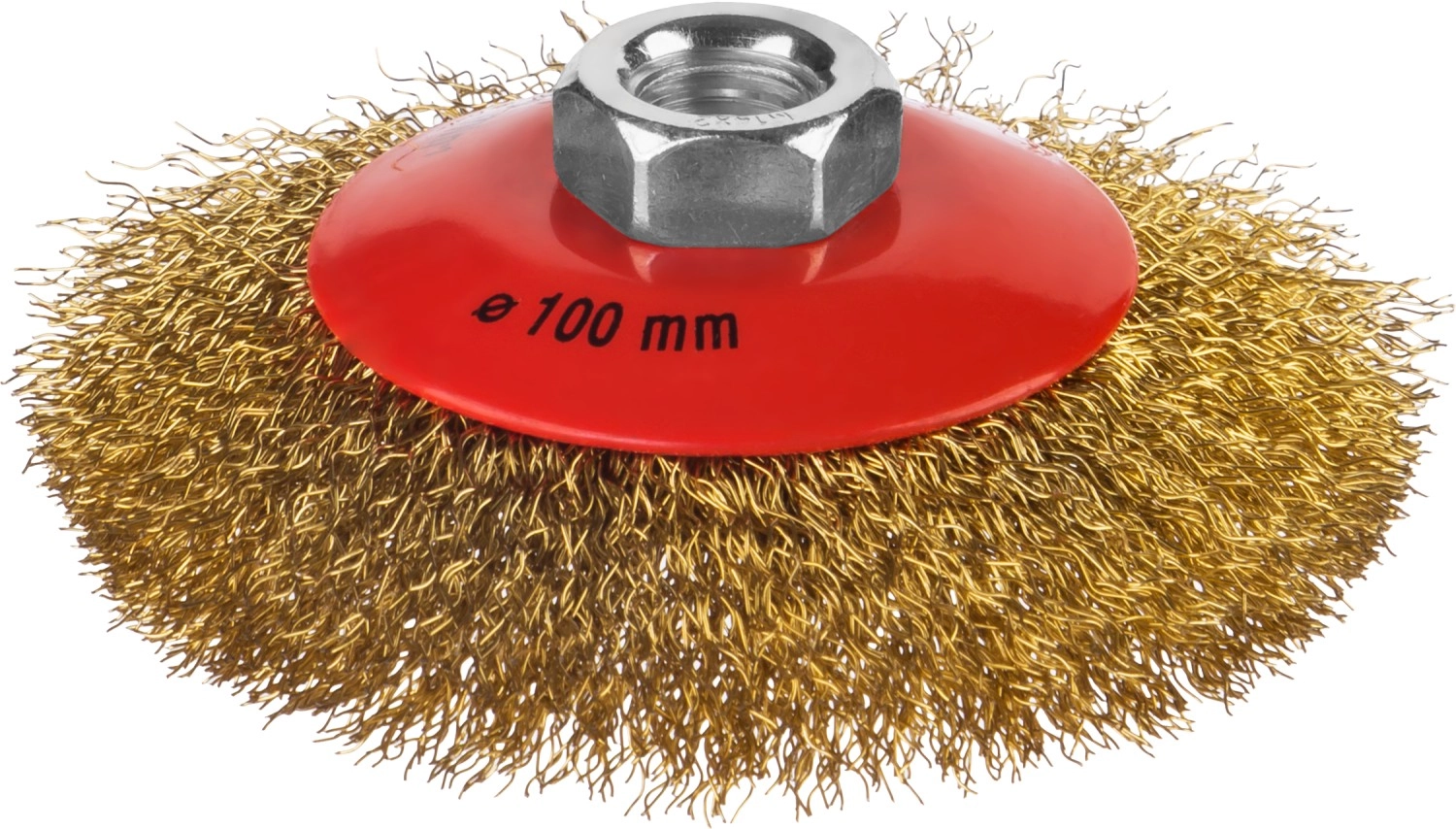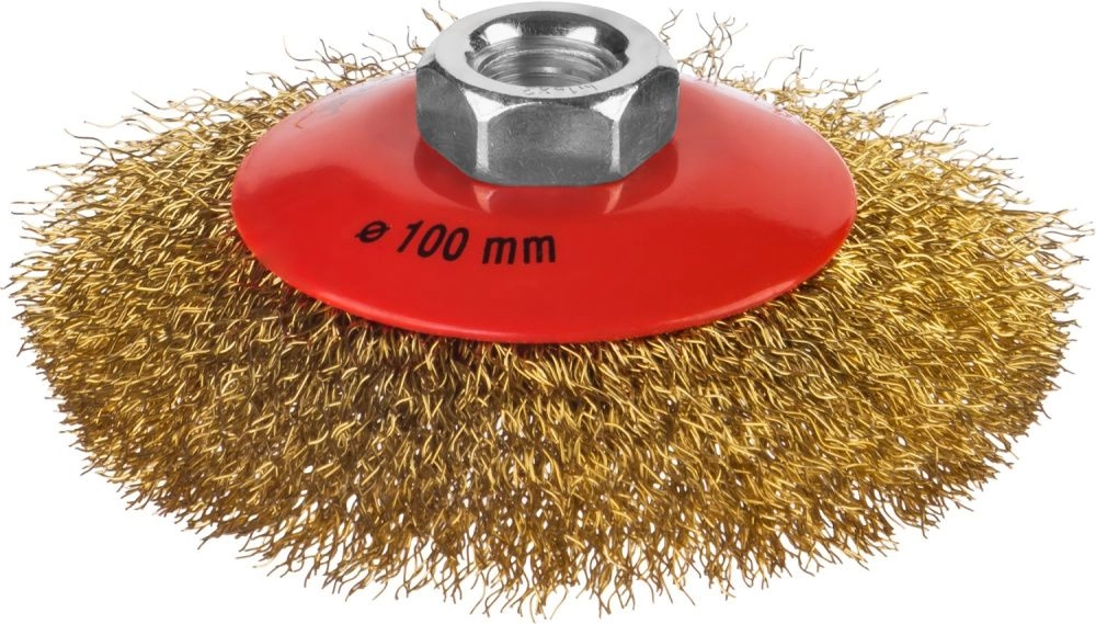 ПроизводителиЩетка коническая для УШМ, витая стальная латунированная проволока 0,3 мм, d=100 мм, MIRAX 35143-100