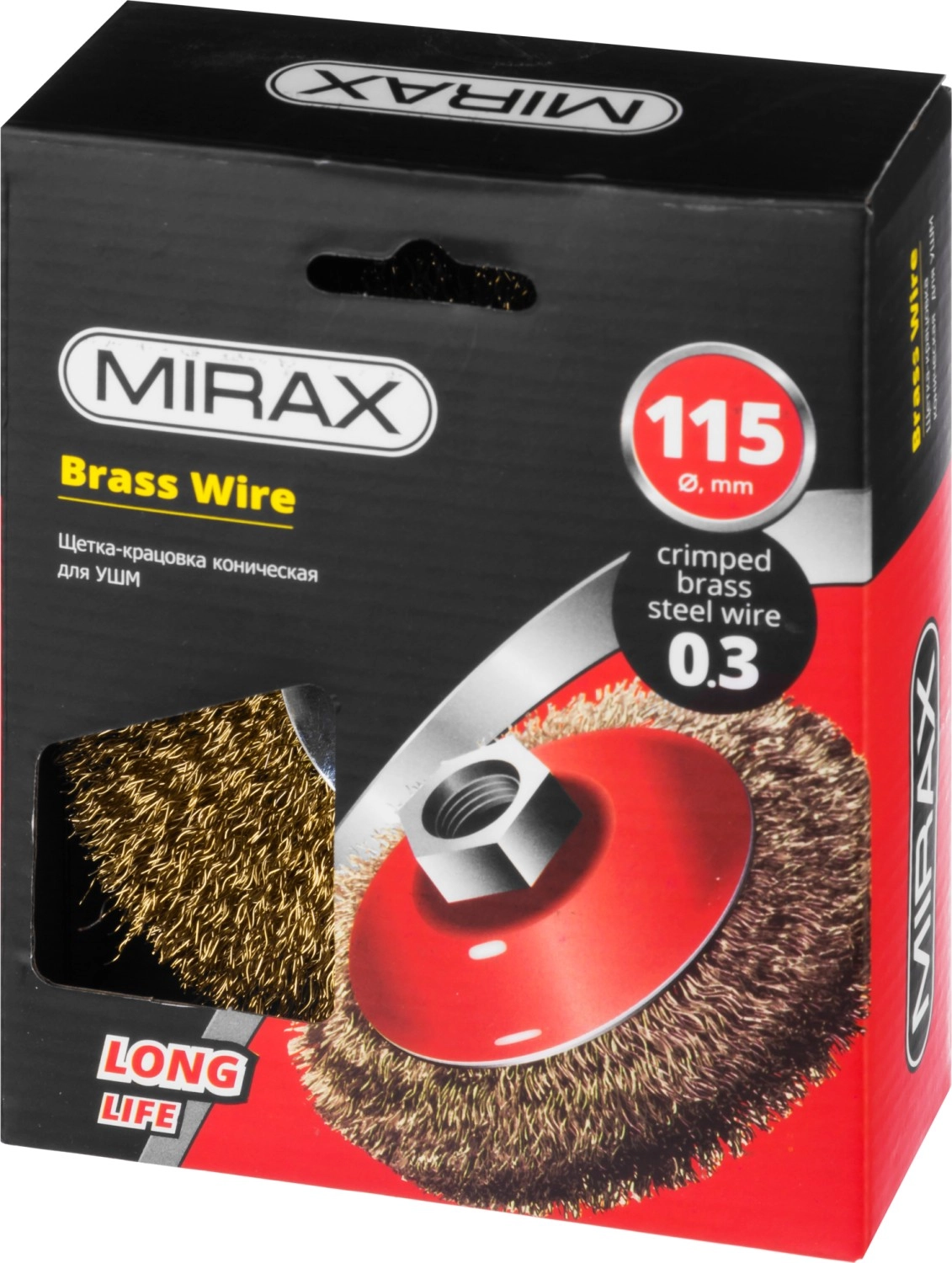 Латунированное покрытие защищает рабочую часть щетки от коррозии.