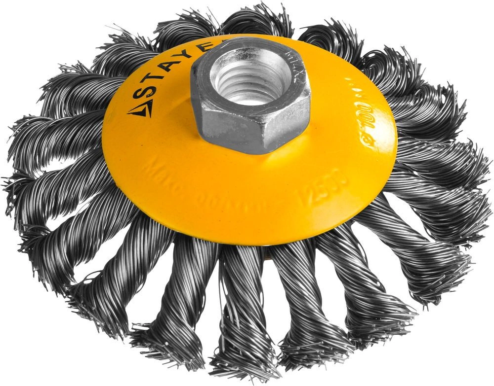 ПроизводителиЩетка коническая (коса) 100ммхМ14, стальн. пров. 0,5мм "PROFESSIONAL" (35135-100) STAYER