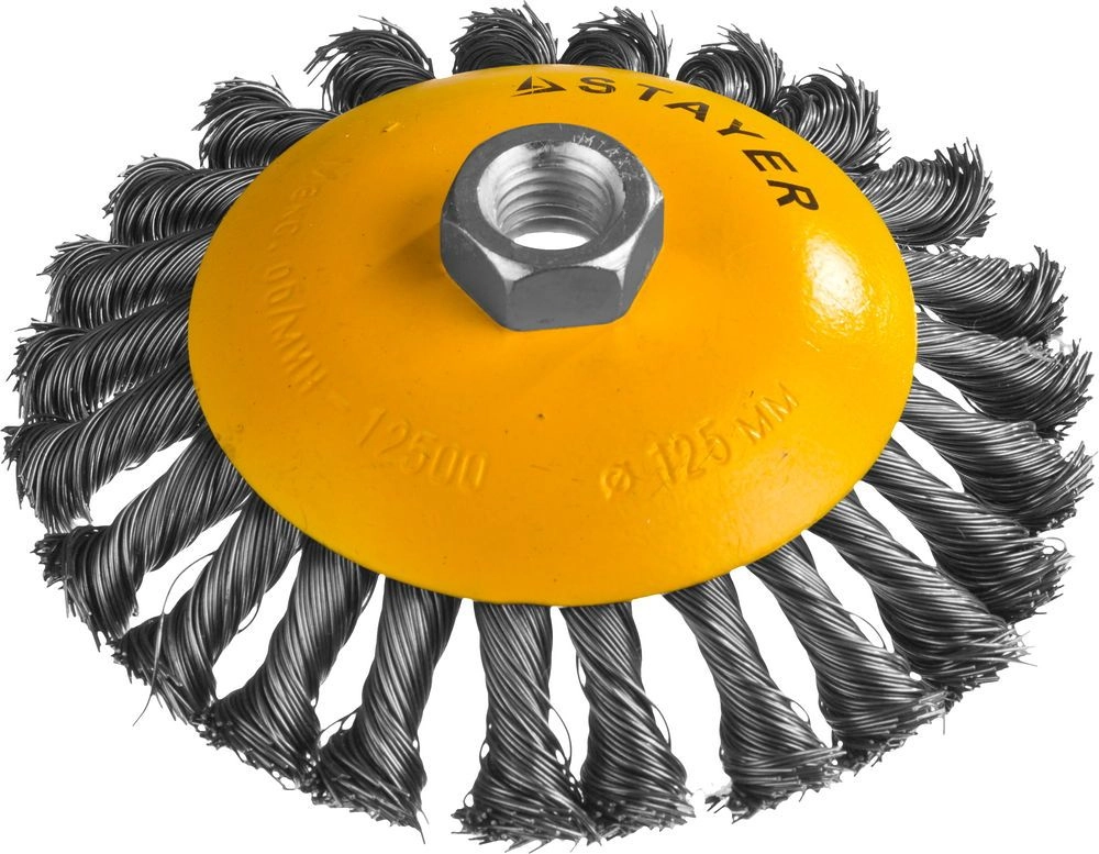 ПроизводителиЩетка дисковая (коса) d=125мм/М14, конич. "Professional" (35135-125) STAYER