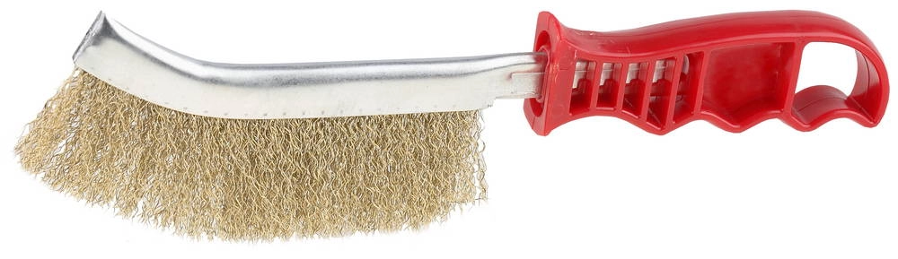 - Основа щетки металлическая, рабочая часть состоит из одного ряда проволоки.