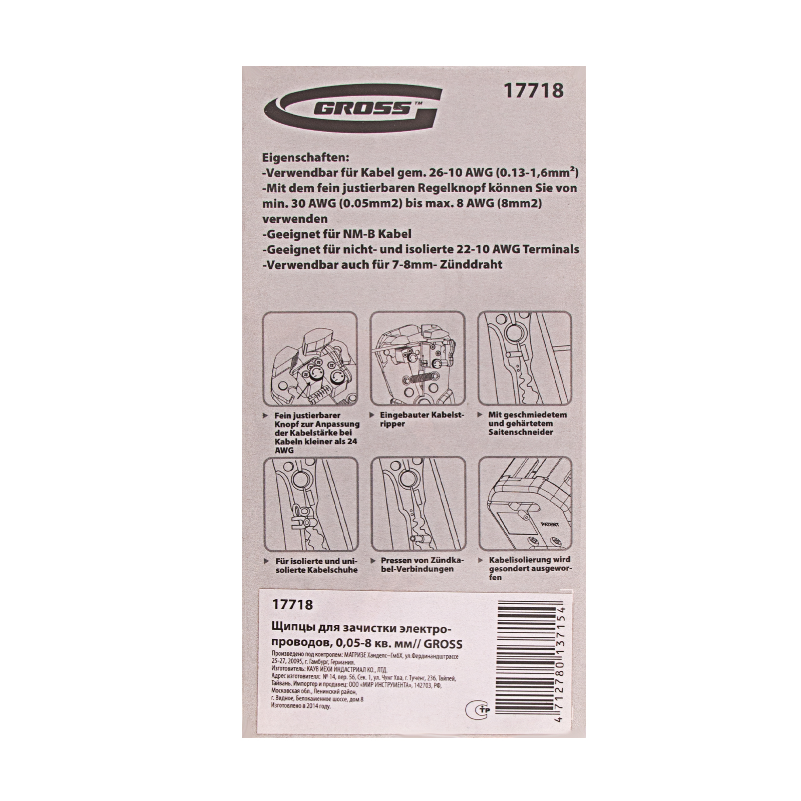 ПроизводителиЩипцы для зачистки проводов (0.05-8 мм²) (17718) GROSS