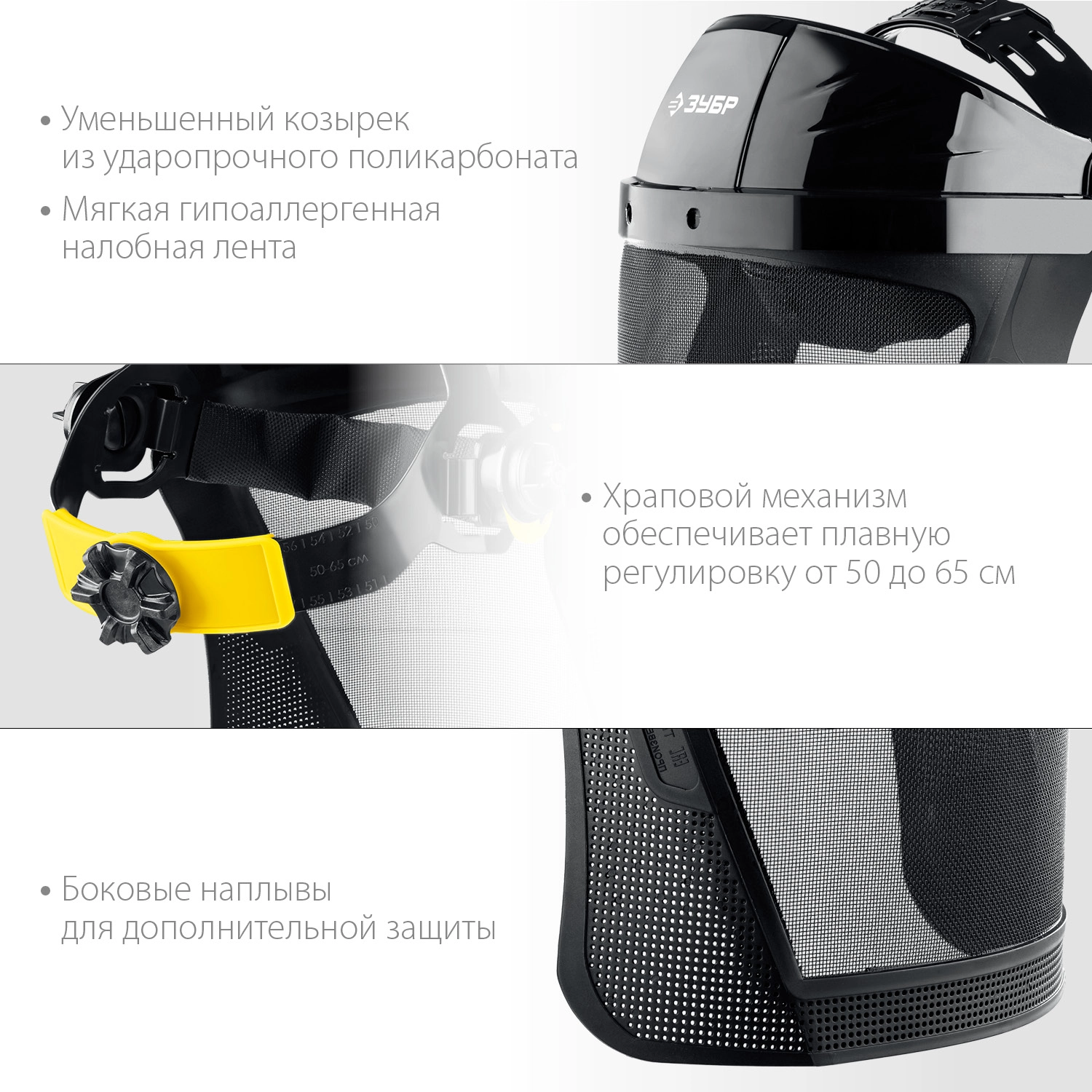 ПроизводителиЩиток лицевой защитный, стальная сетка, 190х339мм, с храповиком (11085_z01) ЗУБР