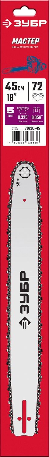 ПроизводителиШина для бензопил тип 5, шаг 0.325, паз 1.5мм, 45см (70205-45) ЗУБР
