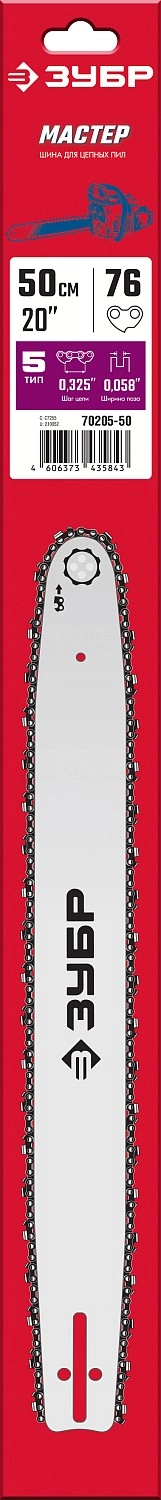 ПроизводителиШина для бензопил тип 5, шаг 0.325, паз 1.5мм, 50см(70205-50) ЗУБР
