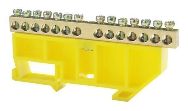 ПроизводителиШина N нулевая на DIN-изоляторе 14 отверстий желтая ETP