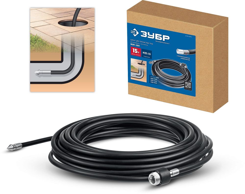 ПроизводителиШланг для прочистки труб 15 м, для пистолета МИГ-280 (70414-280-15) ЗУБР
