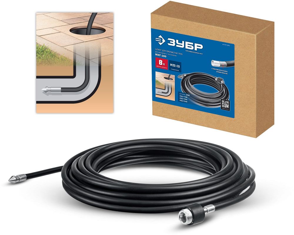 ПроизводителиШланг для прочистки труб 8 м, для пистолета МИГ-280 (70414-280-8) ЗУБР