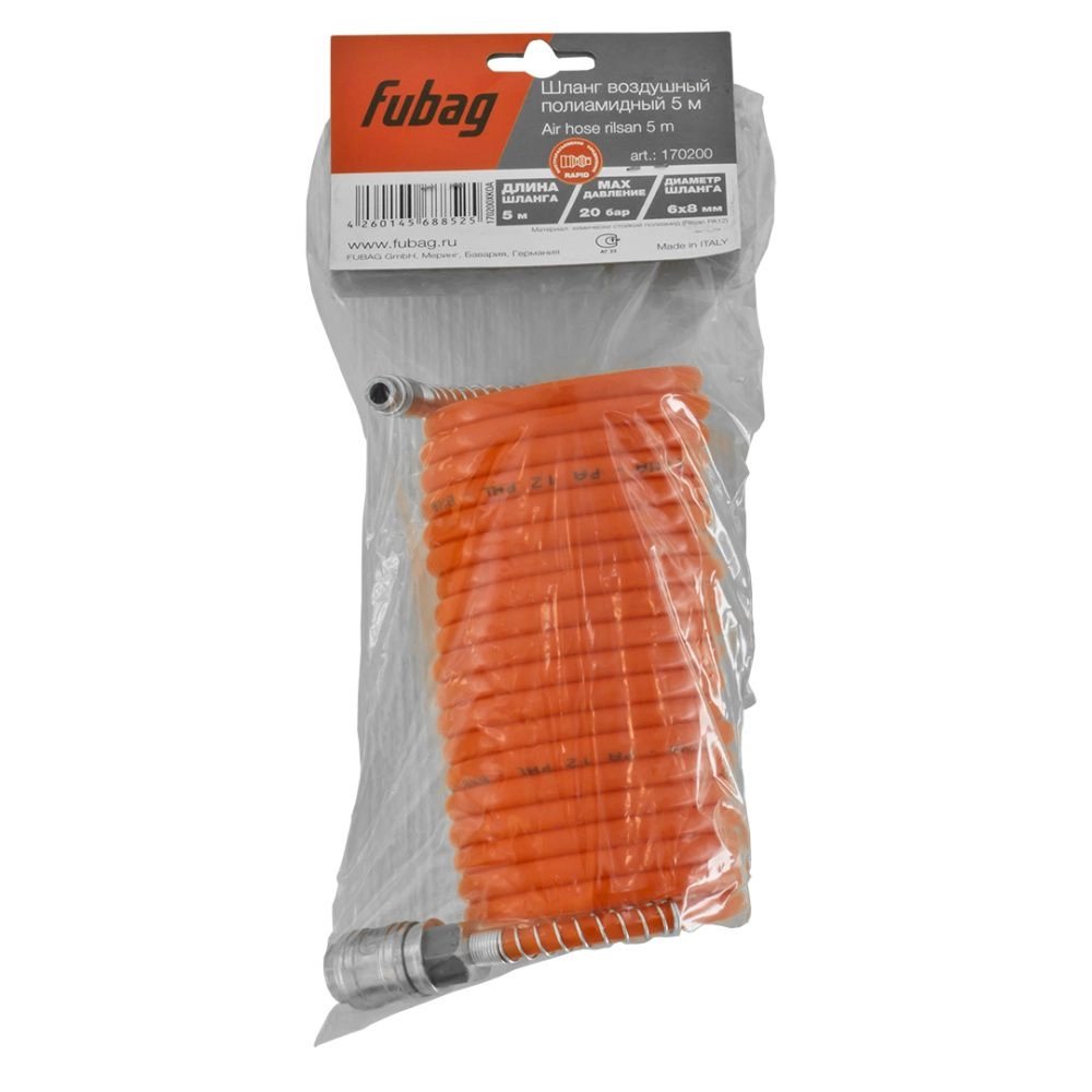 ПроизводителиШланг химстойкий спиральный с фитингами 6x8 мм 5 м (170200) FUBAG