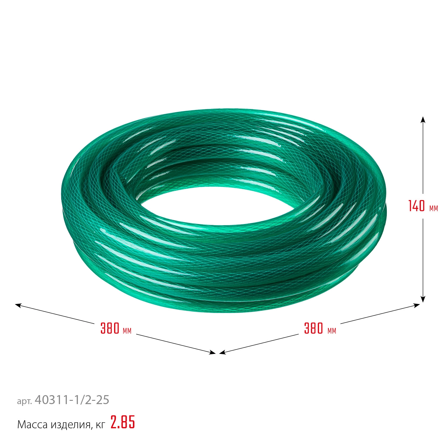 СТАНДАРТУровень качества. При классификации продуктов, имеющих схожее наименование, но обладающие различными потребительскими свойствами мы приняли следующий Вес факторов: 80% - подтвержденный ресурс, 15% - заявленная производительность/скорость, 5% - субъективные ощущения потребителя. ПодробнееКод товара: 0028274(0)Эластичный трехслойный шланг изготовлен из высококачественного ПВХ и армирован прочными полиэстеровыми нитями. Высокая устойчивость формы шланга достигается благодаря особой технологии армировки: нити накладываются под оптимальным углом к горизонтальной оси шланга. За счет этого диаметр и длина шланга остаются стабильными. Используется при проведении поливочных или иных работ, требующих водоснабжения. Шланг поливочный трехслойный армированный используется для поливочных работ на садово-огородных участках. Шланг изготовлен из медицинского ПВХ, не токсичен, имеет гладкую внутреннюю поверхность, препятствующую образованию водорослей. Трубка шланга армирована высокопрочной полимерной нитью, которая предотвращает повреждение во время работы, тем самым обеспечивая надёжность и длительный срок службы изделия.43.55 руб. Скидка только для физ. лиц 1% 42.90 руб. за шт