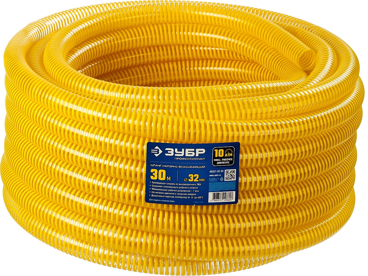 ПроизводителиШланг напорно-всасывающий со спиралью ПВХ, 10 атм, 32мм х 30м (40327-32-30) ЗУБР