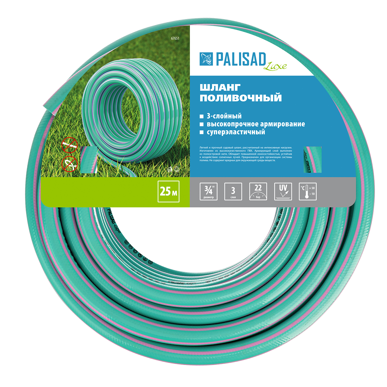 ПроизводителиШланг поливочный армированный 3 слойный 3/4", 25м, LUXE (67651) PALISAD