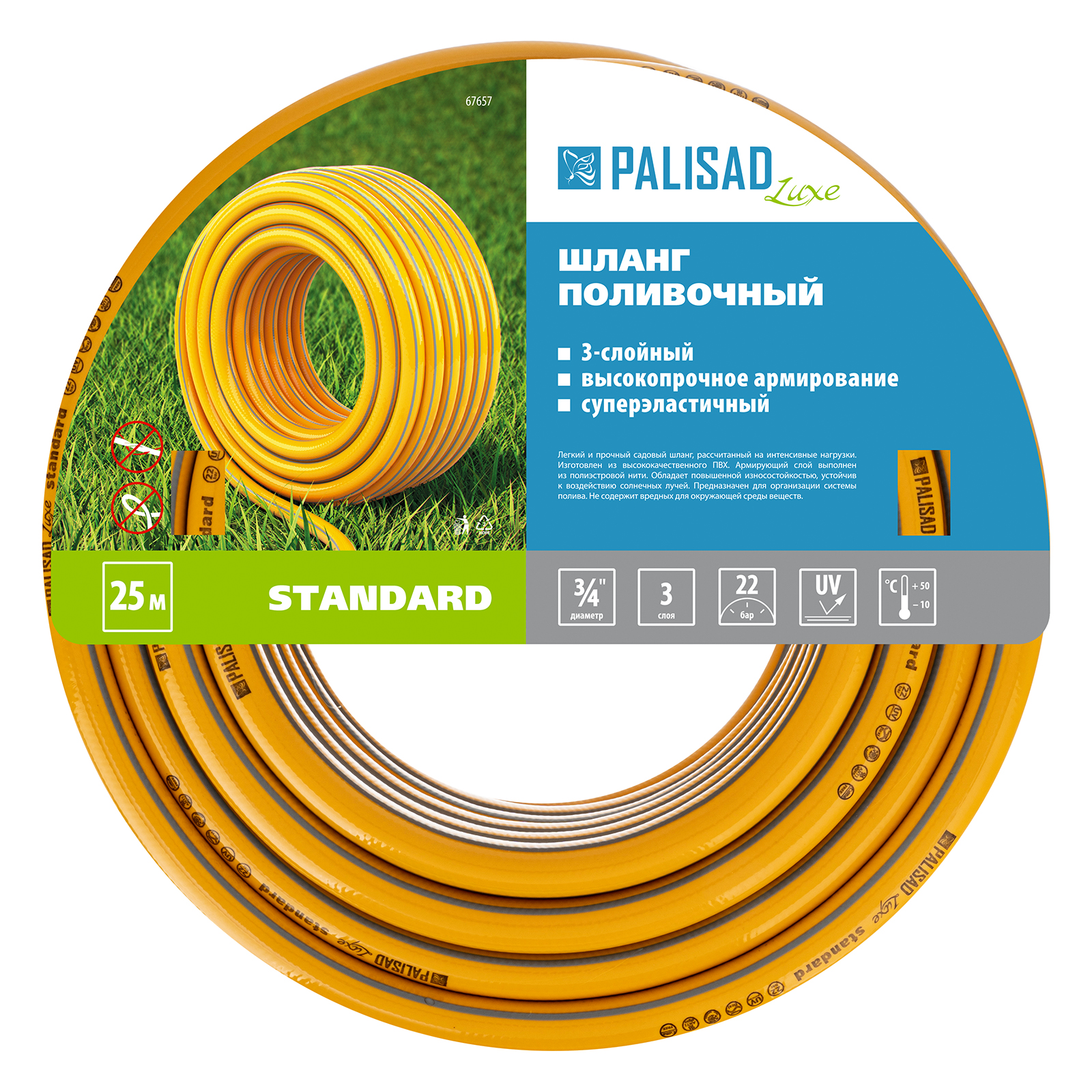 ПроизводителиШланг поливочный армированный 3 слойный "Standard" 3/4", 25м, LUXE (67657) PALISAD