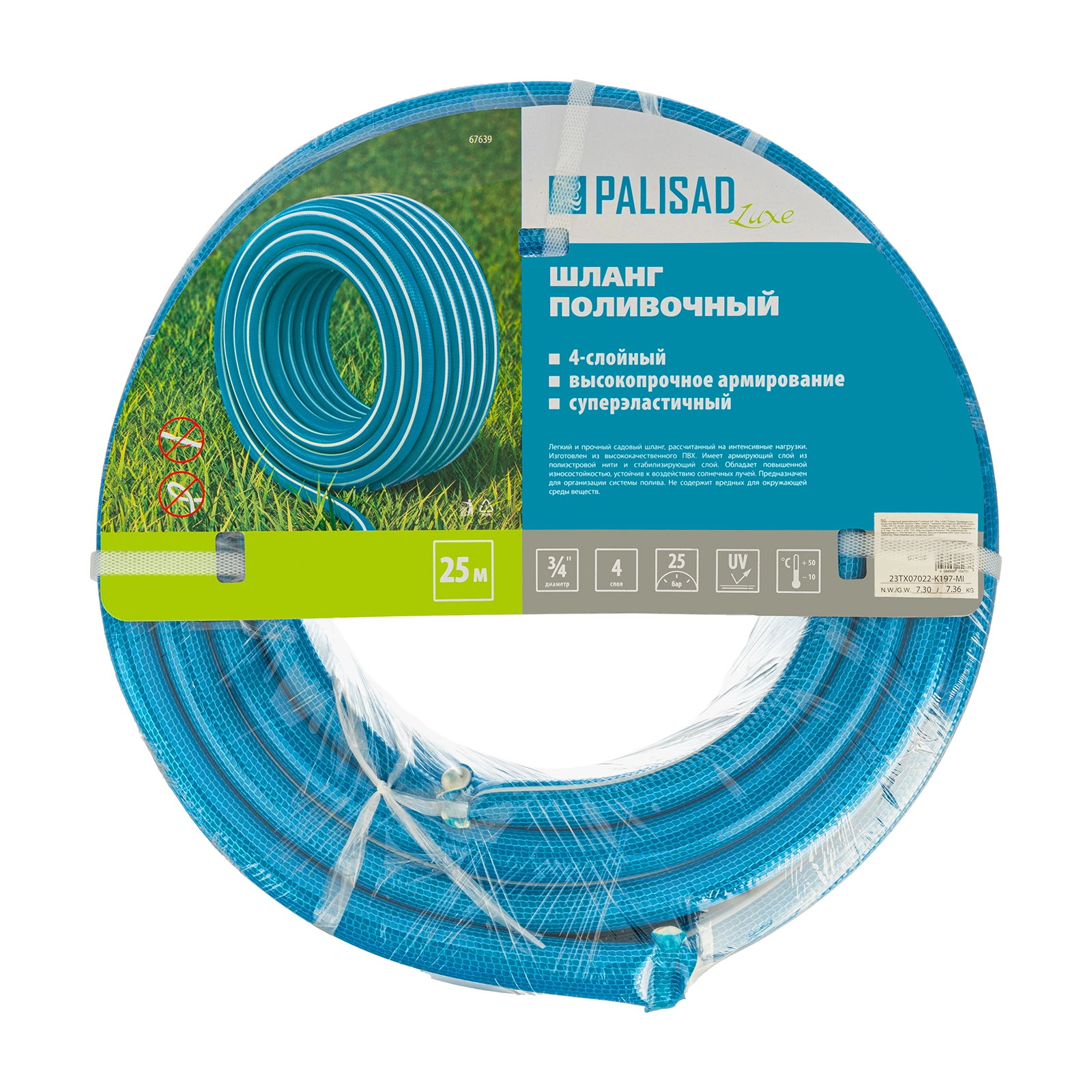 ПроизводителиШланг поливочный армированный 4 слойный 3/4", 25м, LUXE (67639) PALISAD