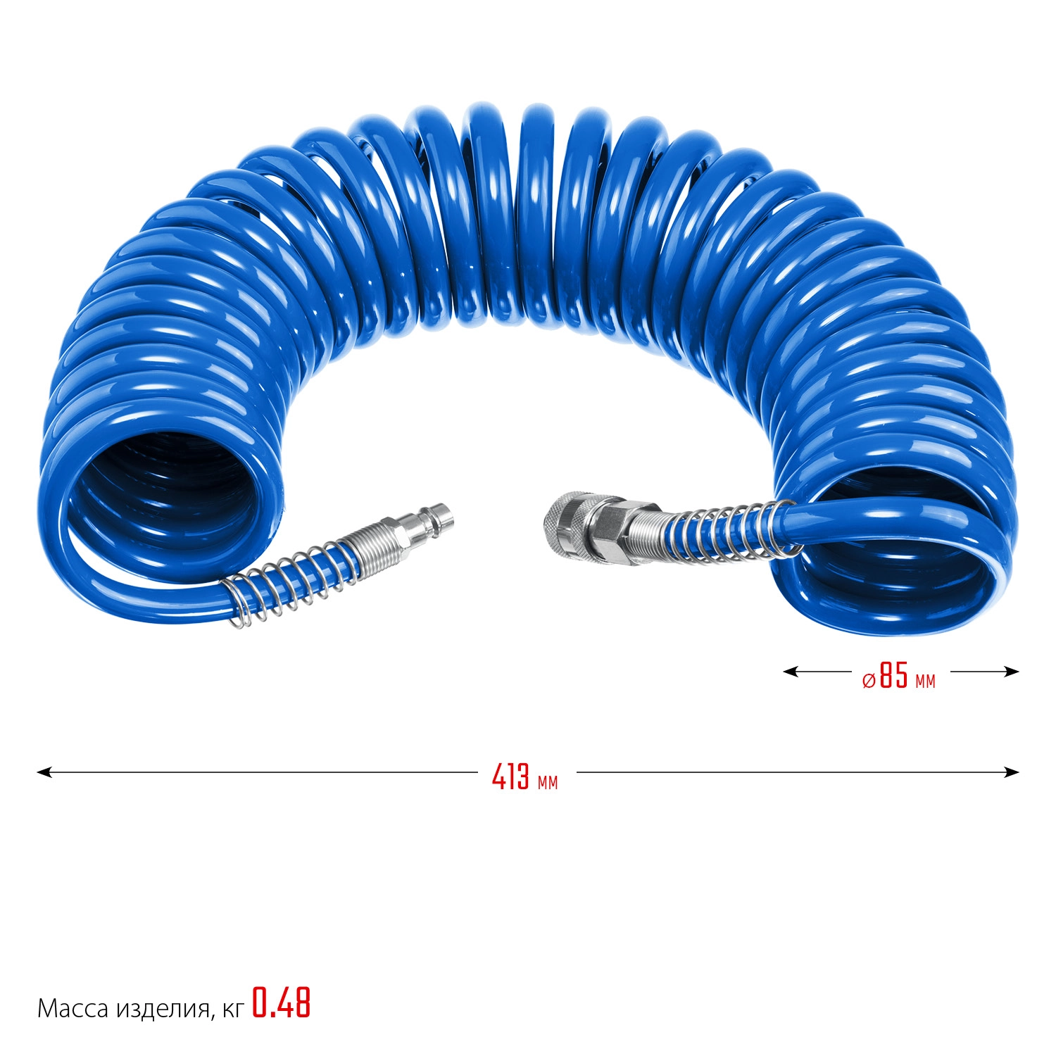 ПроизводителиШланг спиральный воздушный, с фитингами рапид 10 м, 6х8 мм, 15 бар (6473-10) ЗУБР