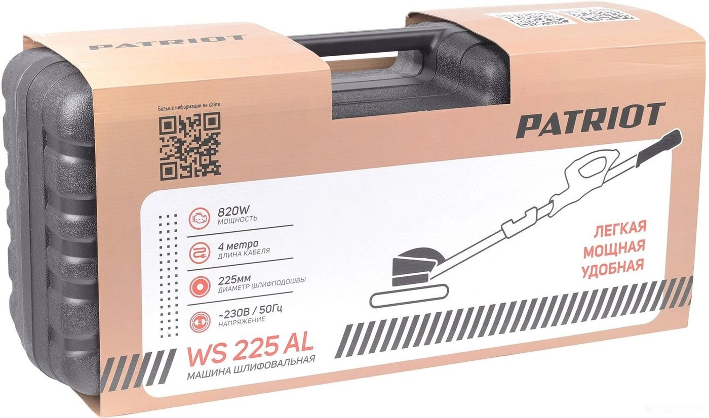 ХарактеристикиАртикул 110301524Бренды PATRIOTСтрана производства КитайОписание товара обновлено 11.09.2025 10:47:06Прямошлифовальная машина WS 225 AL предназначена для шлифовки сухой штукатурки, потолков и стен, внутренних и наружных поверхностей, очистки полов, удаления лакокрасочных покрытий и штукатурки.