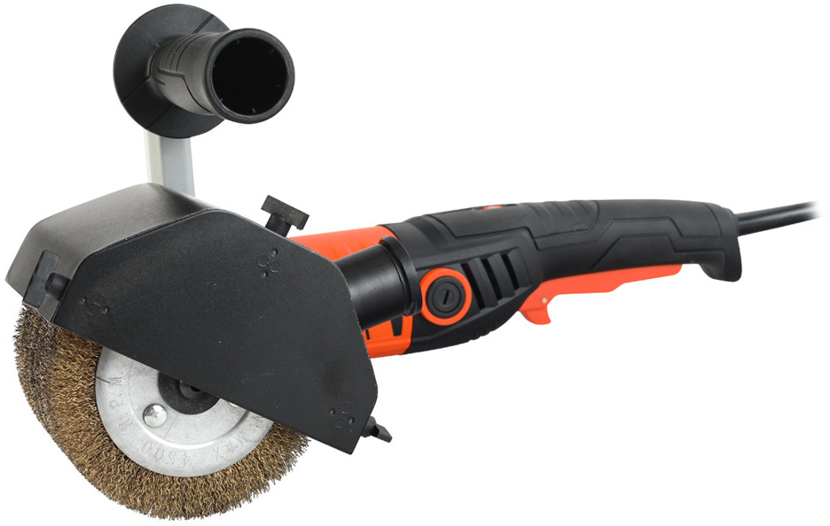 Большая площадь шлифщетки прикрыта защитным кожухом, который предотвращает распространение пыли из зоны обработкиЩеточная шлифовальная машина: 1 шт.;