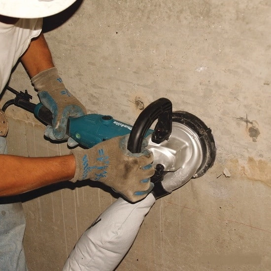 Рабочая насадка у шлифмашины Makita PC5000C – алмазный диск диаметром 125 мм. Он входит в комплект поставки и легко устанавливается с помощью ключа, которыми инструмент также укомплектован. Блокировка вала для облегчения исполнения этой операции предусмотрена. Следует помнить, что в этой модели используется особый фирменный диск Макита, рассчитанный на шлифовку под углом и имеющий выпускные отверстия для пылеудаления.