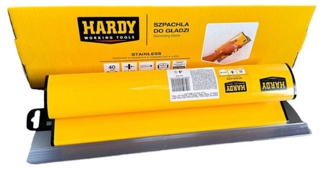 Шпатель для машинного и ручного нанесения шпатлевки Hardy линейки Hardy 763. Его лезвие имеет толщину 0,3 мм и закругленные края. Изготовлен из прочной нержавеющей стали высокого качества. Отлично подходит для работы по шпаклевке поверхностей. лезвие из нержавеющей стали толщиной 0,3 мм не повреждает поверхность; легкая пластиковая ручка эргономичной формы оставляет ваши руки чистыми (в отличие от ручек из алюминия); пазы на рукоятке предотвращают скольжение инструмента во время работы; легкая замена лезвия – не нужно использовать дополнительные инструменты; шпахля совместима с адаптером и телескопическим стержнем;Производитель: Каем (Харди), Польша