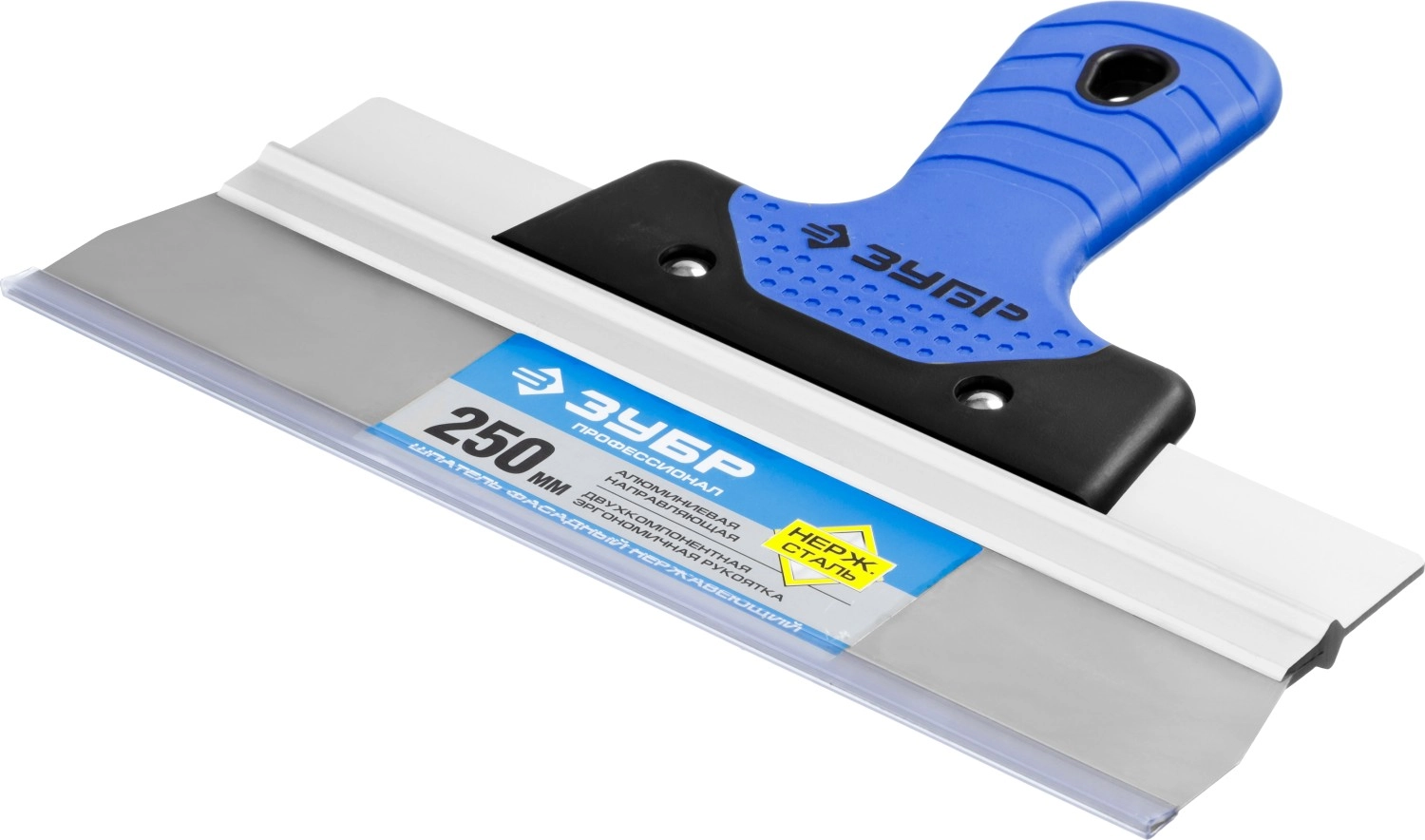 ПроизводителиШпатель нерж. фасад. 250 мм, профилир. полотно, двухкомп. рук. "ПРОФЕССИОНАЛ" (10049-25_z03) ЗУБР