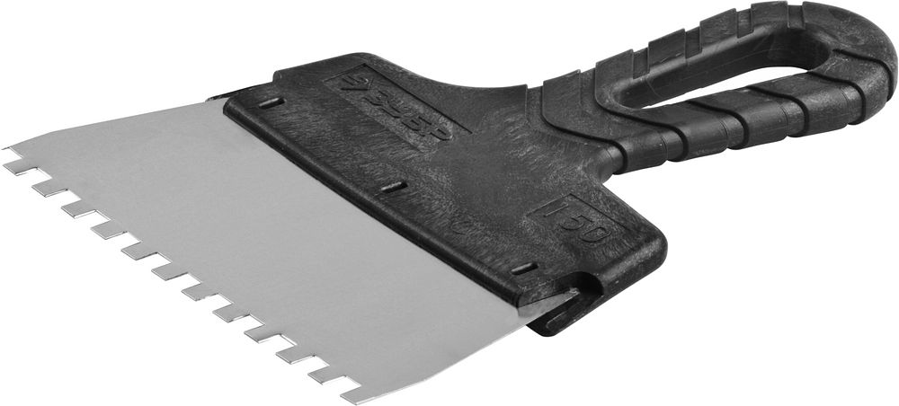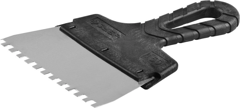 ПроизводителиШпатель зубчатый нерж. фасад. 150 мм/ 6 мм, пласт. рук. "МАСТЕР" (10078-15-06) ЗУБР