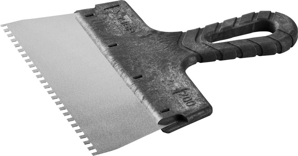 ПроизводителиШпатель зубчатый нерж. фасад. 200 мм/ 4 мм, пласт. рук. "МАСТЕР" (10078-20-04) ЗУБР