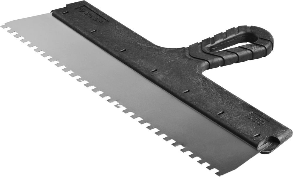 СТАНДАРТУровень качества. При классификации продуктов, имеющих схожее наименование, но обладающие различными потребительскими свойствами мы приняли следующий Вес факторов: 80% - подтвержденный ресурс, 15% - заявленная производительность/скорость, 5% - субъективные ощущения потребителя. ПодробнееКод товара: 0017219(0)Благодаря зубчатой кромке шпатель идеально подходит для работы со строительными и клеевыми смесями, полотно из нержавеющей стали обеспечивает надежность и долгий срок службы инструмента, а удобная пластмассовая рукоятка создает условия для комфортной работы4.85 руб. за шт