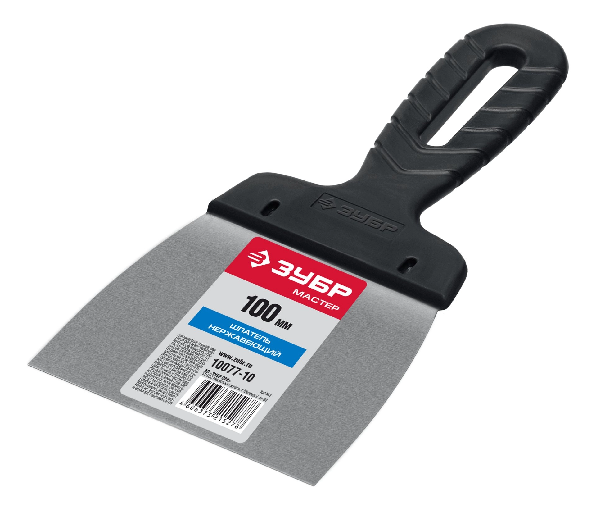 ПроизводителиШпатель нерж. 100 мм, пласт. рук. "МАСТЕР" (10077-10) ЗУБР