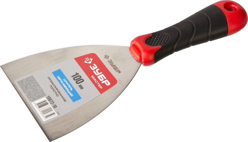 ПроизводителиШпатель нерж. 100 мм, профилир. полотно, двухкомп. рук. "МАСТЕР" (10072-10) ЗУБР