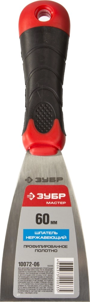 ПроизводителиШпатель нерж. 60 мм, профилир. полотно, двухкомп. рук. "МАСТЕР" (10072-06) ЗУБР