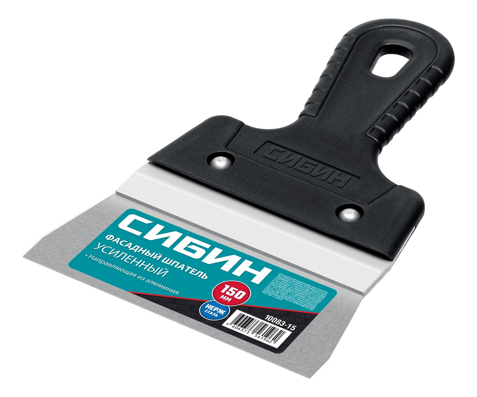 ПроизводителиШпатель нерж. фасад. 150 мм, усиленный, алюм. направляющая (10083-15) СИБИН